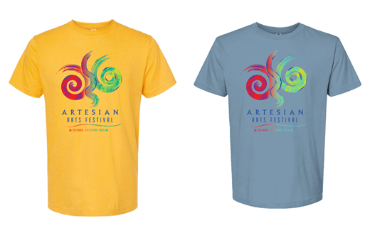 Festival shirts will be available to purchase May 2. Stop by the t-shirt vendor booth early to purchase your Artesian Arts Festival shirts while supplies last.